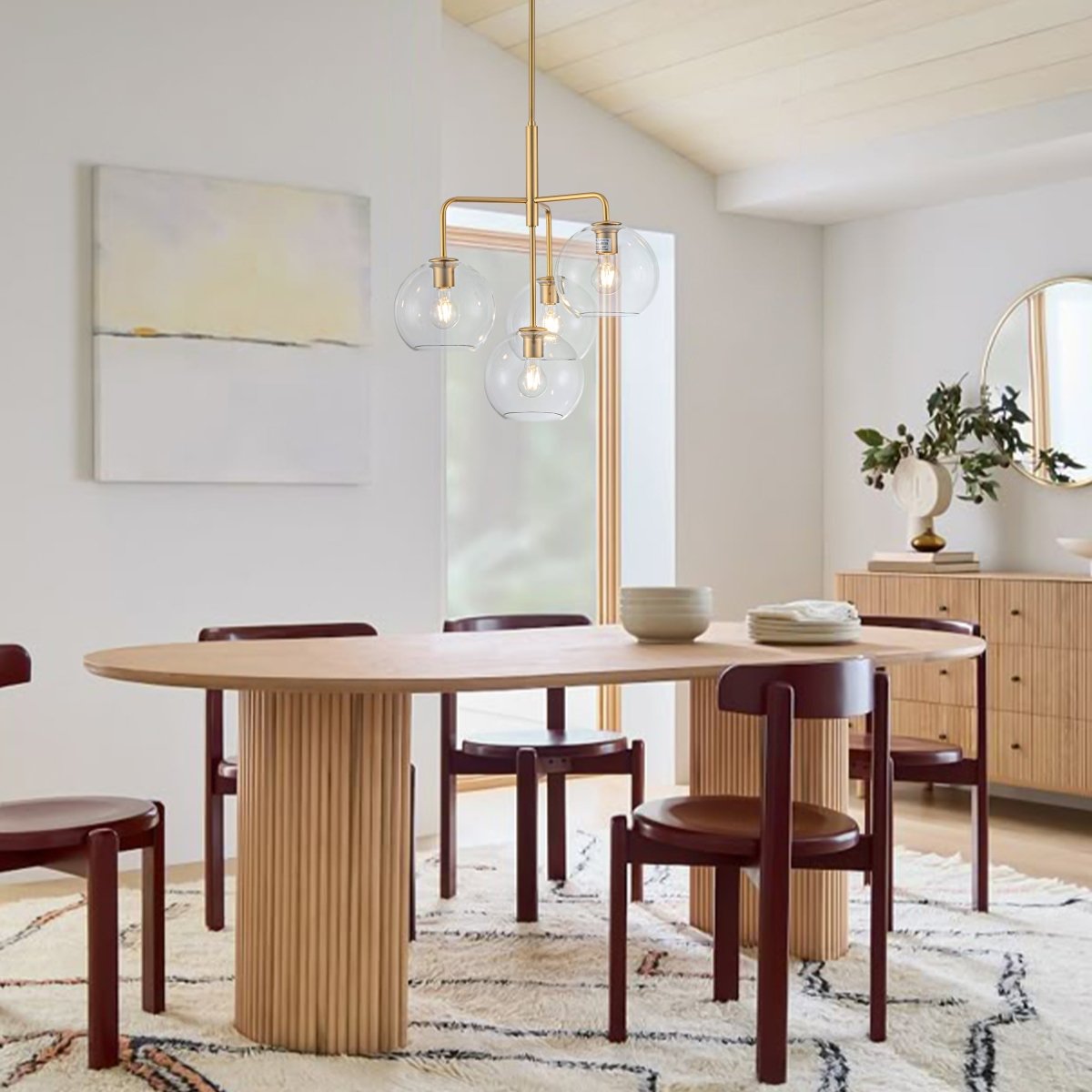 - Hand-blown transparent glass globe bubble chandelier