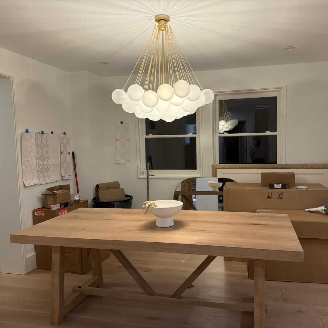 Our modern cluster frosted bubble chandelier pendant is the must-have piece for your interiors. The ambient light of our bubble chandelier that’s cast across the glass adds a gorgeous atmosphere. The glow softly diffused from the bubbles is reminiscent of sunlight breaking through white clouds, creating a serene peace. Glass orbs are frosted by hand to generate an exquisite touch, enabling such a modern chandelier to make an impact against darker rooms as well. Three E26 base sockets (no bulbs included) are nestled between plenty of frosted globes. Plus, a lovely modern cluster frosted bubble chandelier is a great conversation starter. So this modern chandelier looks incredible wherever you choose to show it off.